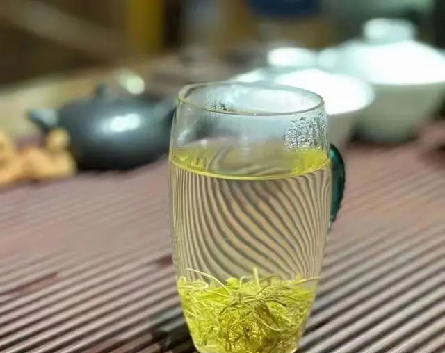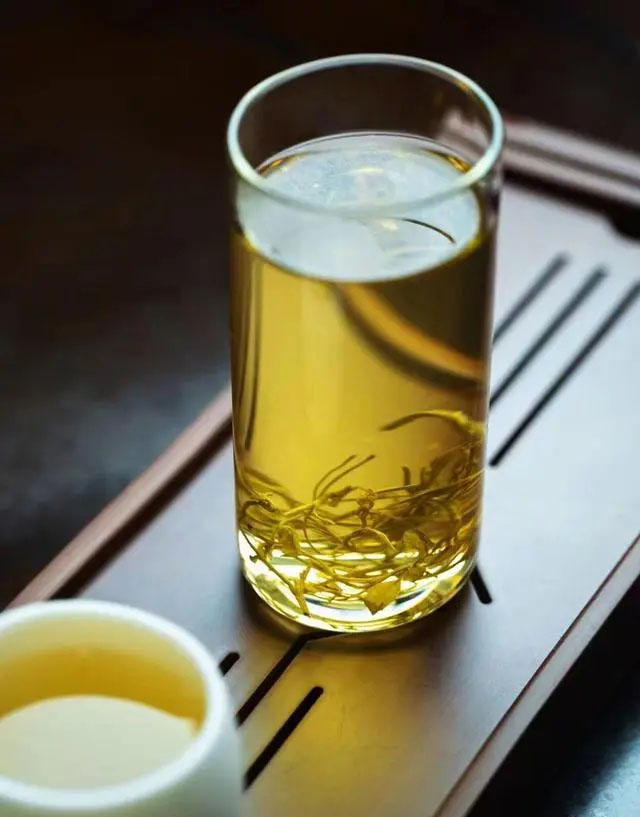 芽尖莓茶(又叫龍須茶)看形態(tài)是最細(xì)的芽尖,制成茶后形似龍須,梗比較少,表面白霜雪白,均勻,泡一杯出來,茶湯是清澈透亮的淡黃,很明顯能看到整株伸展的芽尖,喝下去是先苦后甘甜,茶越好回甘效果越好。